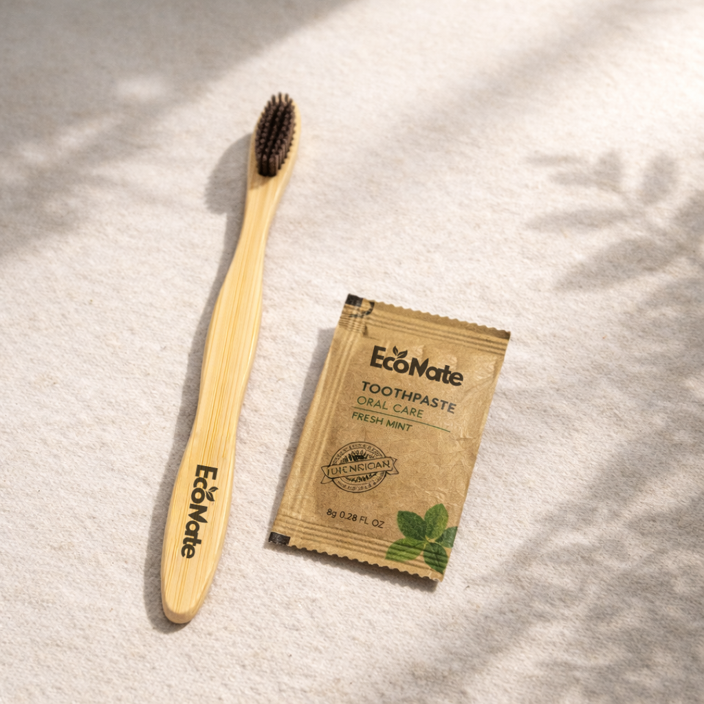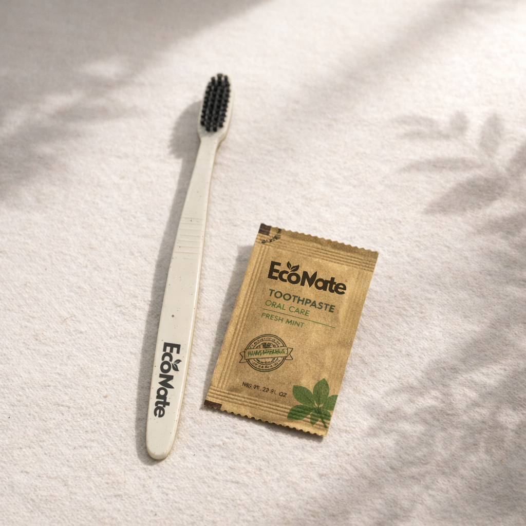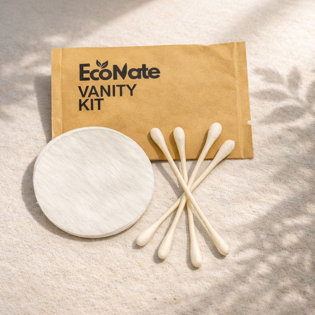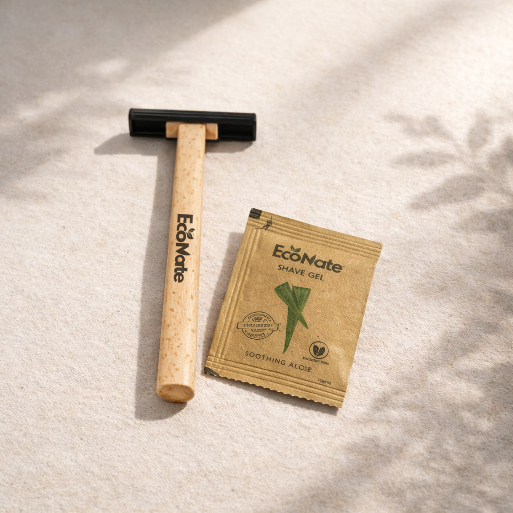 Discover our range of eco-friendly guest care products, including bamboo razors, toothbrushes, and vanity kits, designed to provide comfort while minimizing environmental impact.